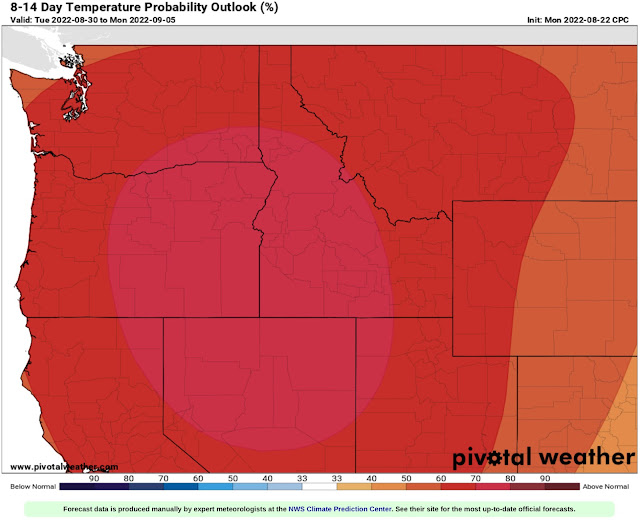 The European model suggests that temperature anomalies around the Pacific Northwest will be in the neighborhood of 10-25 degrees above average on Wednesday. This heat is abnormal because we are reaching the point of the year that average temperatures begin decreasing toward fall temperatures.